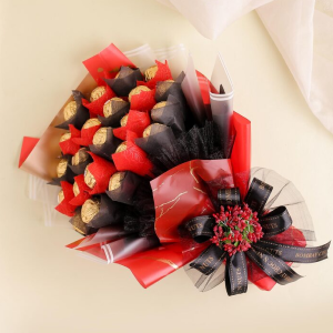 A stunning bouquet of rich chocolates wrapped in deep scarlet hues. Perfect for celebrating love, passion, and indulgence a true symbol of sweet elegance.